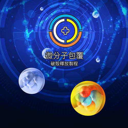 MicroCoated微分子包覆製程,同時具備水性與油性之複合特性,能將不同性質的成分包覆封存及奈米小分子化,包覆後直徑約30nm媒介載體。MicroCoated與細胞膜有相似結構,更容易滲透肌膚,滲透肌底後再破殼,修護/保養/再生成份能在肌膚底層釋放與達到有效作用之特長。