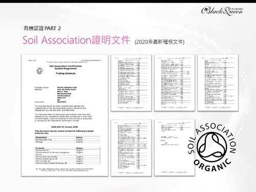 Soil Association創立於1946年,是英國最大的有機團體;由關心並研究農場經營、人類/植物/動物/環境之間關係的農夫、科學家和營養師所組成,為一個獨立運作的慈善機構,現有200家廠商受其有機認證認可。